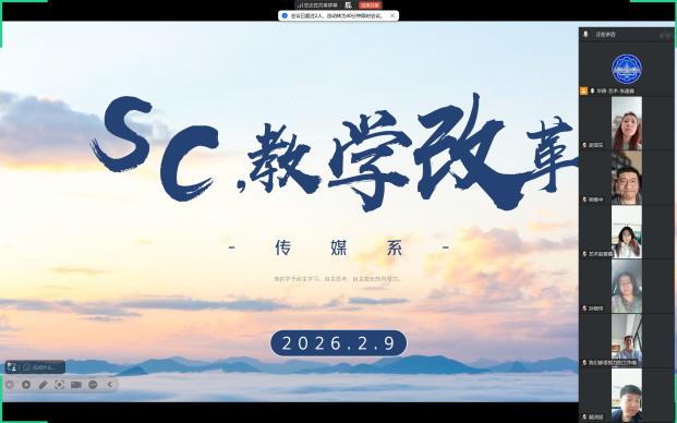为全面推进SC教学改革落地,提高专业教学质量、赋能人才培养提质增效,2026年2月9日,艺术与传媒学院传媒系开展线上SC教学改革专题会议,传媒系全体教师参会,凝聚育人共识,共探教学创新路径。