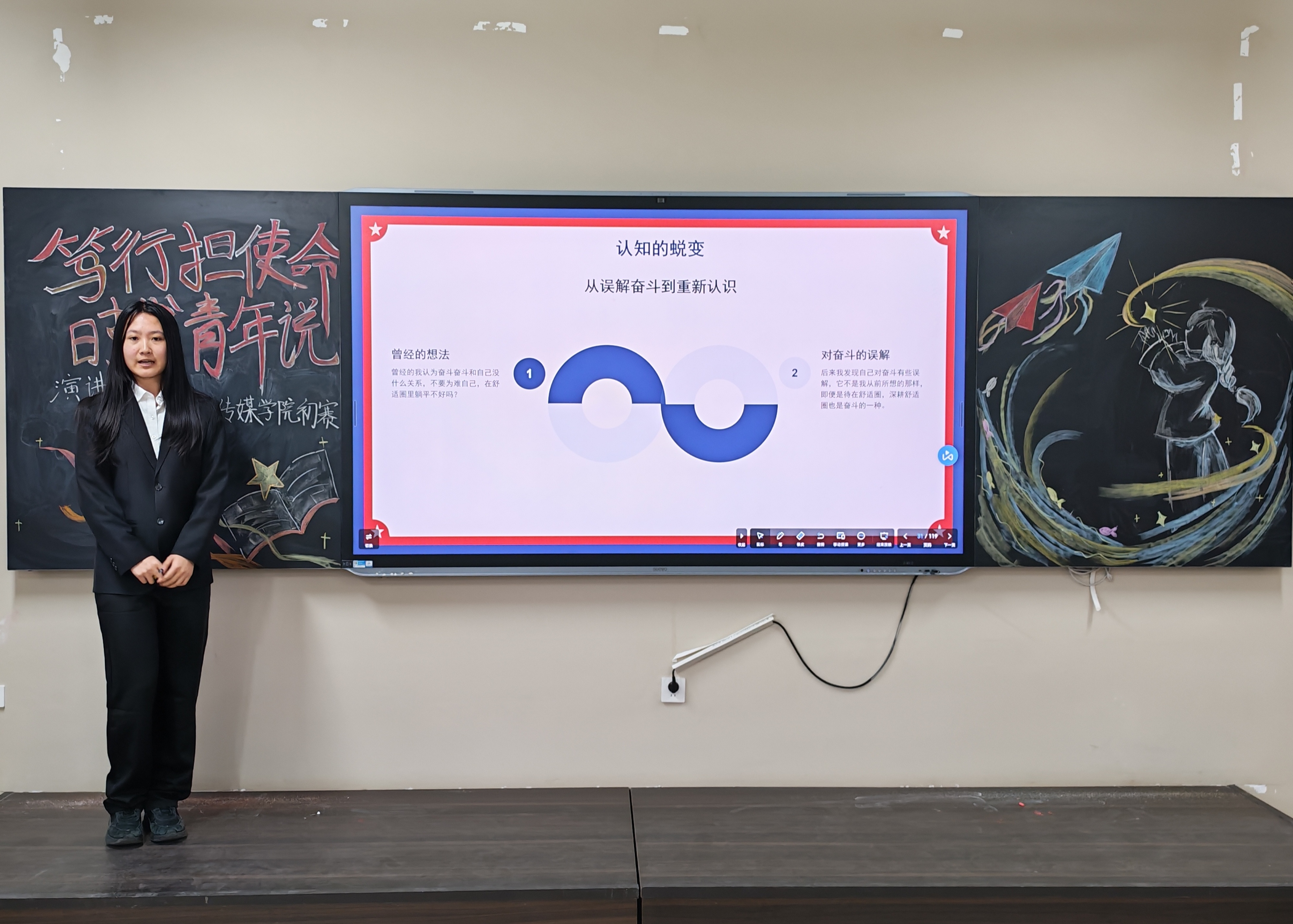 为丰富校园文化生活,推进“课前五分钟演讲”品牌建设,搭建青年学子语言表达与思想交流平台。艺术与传媒学院于2026年3月23日在教一521教室举办“笃行担使命·时代青年说”演讲挑战赛院级复赛,以赛促学、以言聚力,凝聚青年奋进力量,彰显时代青春担当。