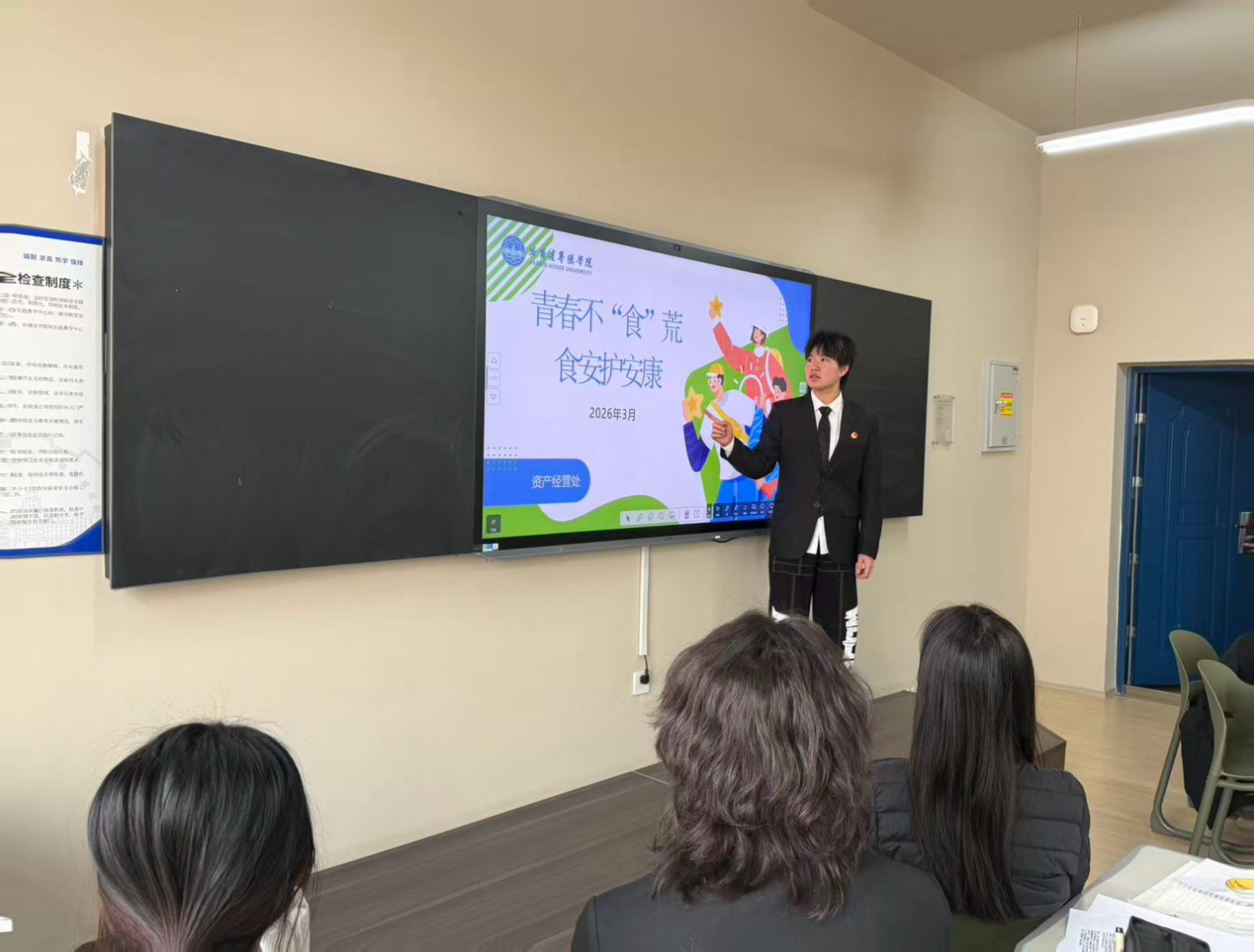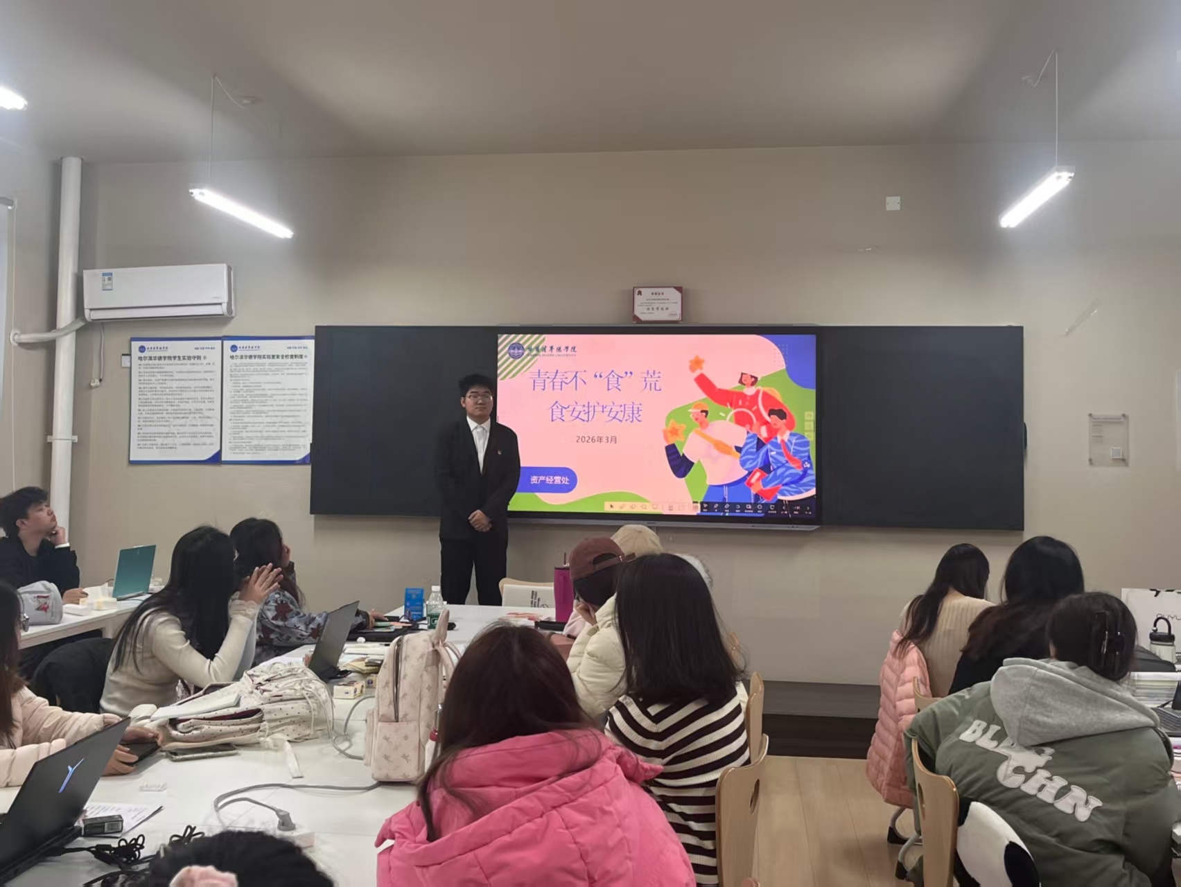 活动以主题班会为基础有序开展,各年级辅导员结合“3·15”消费维权热点与近期食品安全典型案例,围绕食品安全核心内容展开讲解,从食品选购、储存、食用等关键环节拆解安全要点,重点普及“三无”食品、变质食品的甄别方法,同时针对校园外卖选择、食堂就餐注意事项、网购食品维权流程等学生日常饮食相关问题逐一解答,叮嘱同学们提高食品安全警惕性,摒弃不良饮食消费习惯,让食品安全理念真正入脑入心。