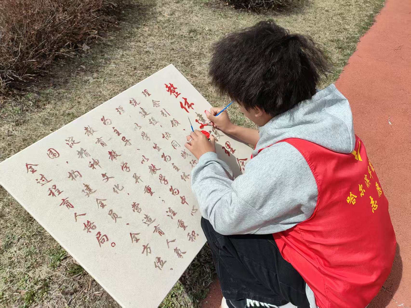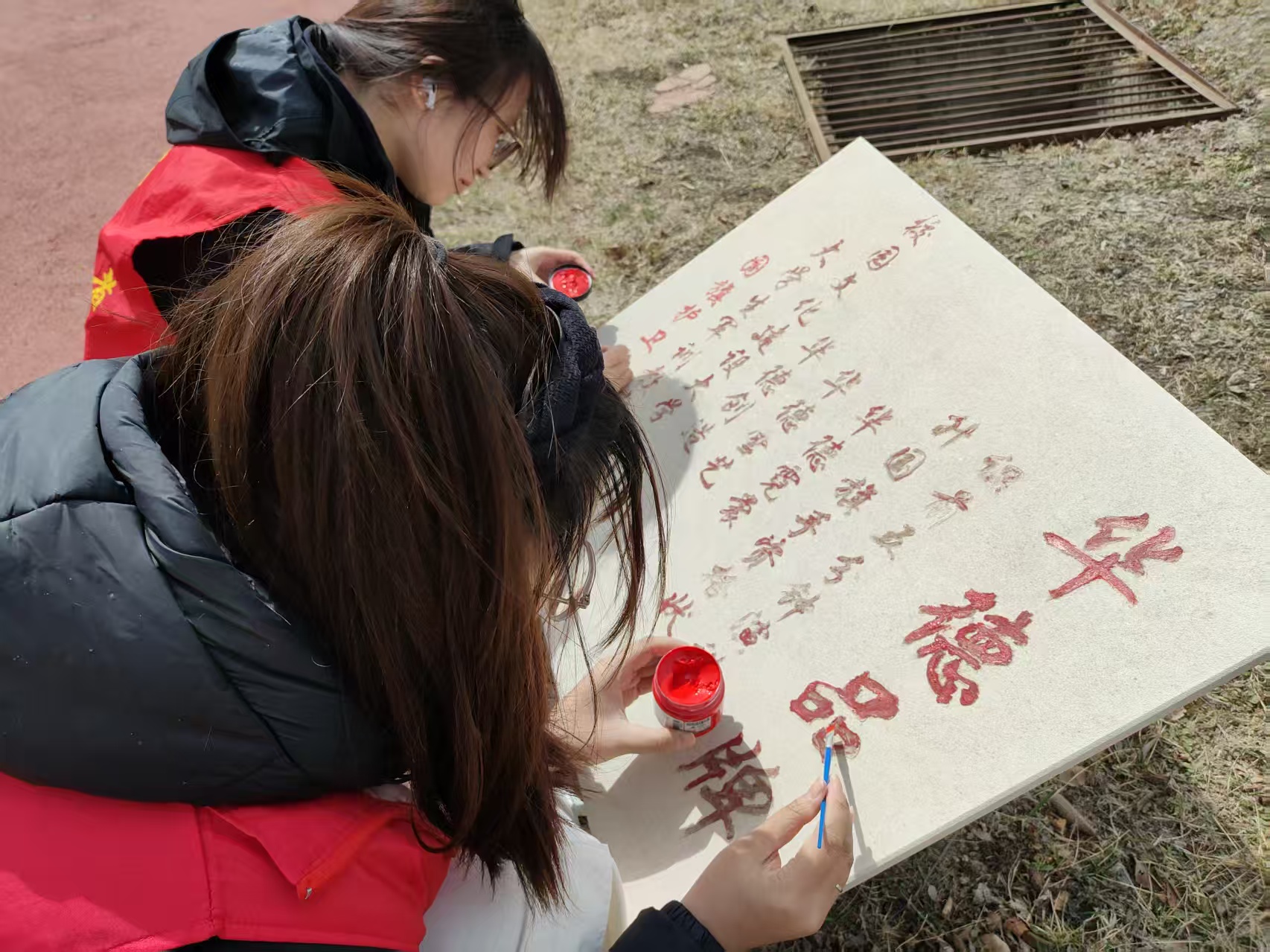 为全面夯实校园精神文明建设根基,强化文化育人工作实效,持续深化青年学子理想信念教育与校风学风培育。艺术与传媒学院“艺凝众志”志愿服务队在学院学生发展中心副主任丛宇的带领下,于2026年4月21日在校园行政楼外文化区域,组织开展校园文脉匠心描红专项志愿服务活动,以志愿服务实践载体,扎实推进校园文化环境提质升级与精神力量深度传承。