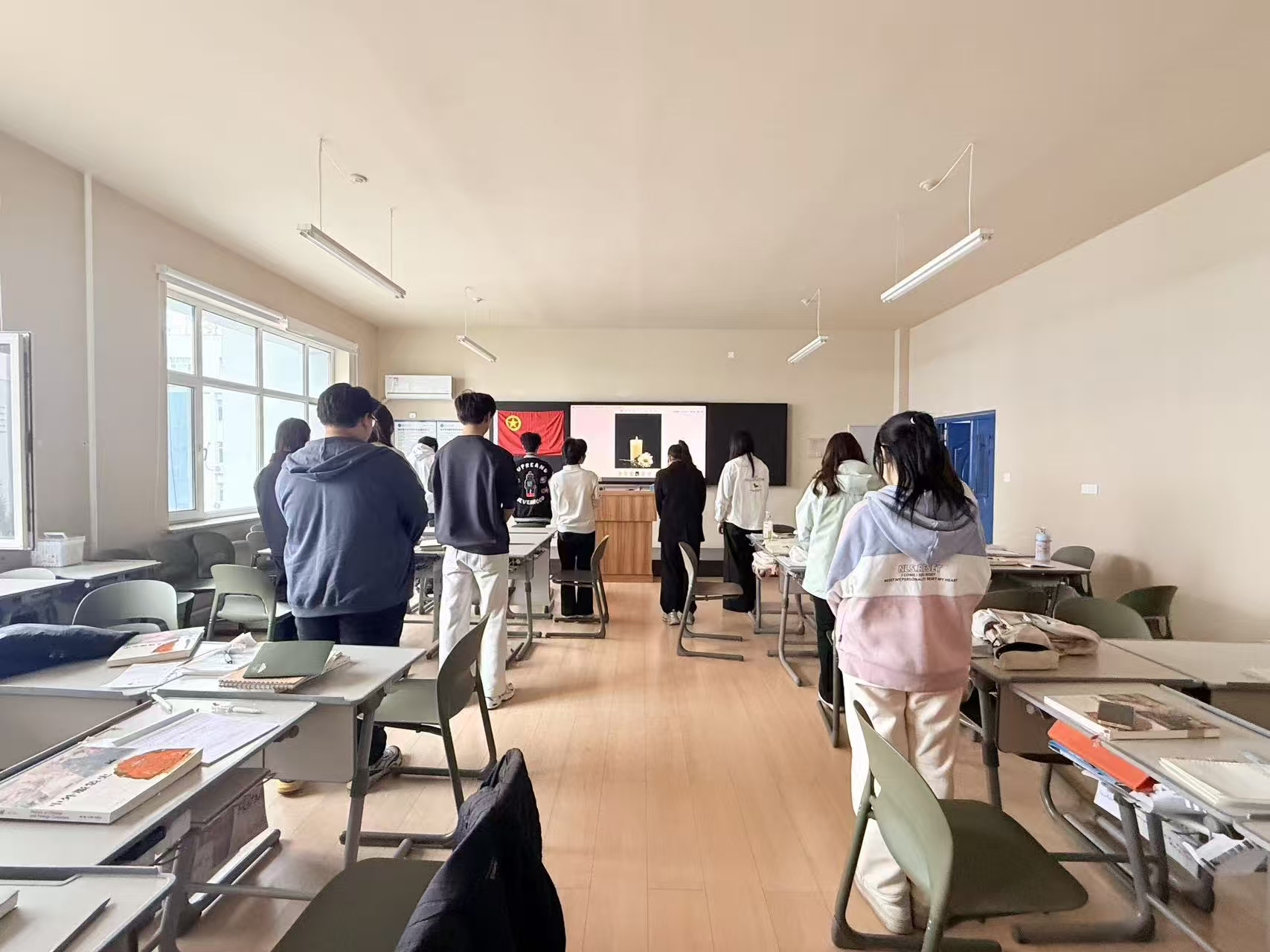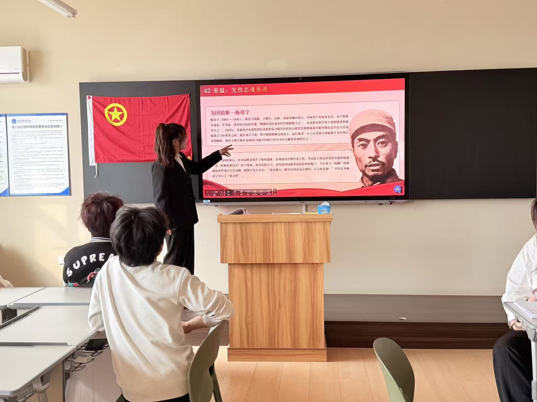 最后,团支书号召大家以革命先烈为榜样,将爱国之情、强国之志转化为报国之行,将以英烈精神为指引,珍惜韶华、努力学习、奋勇争先,以实际行动践行“强国有我”的青春誓言,在新时代新征程中展现青年担当、贡献青春力量。