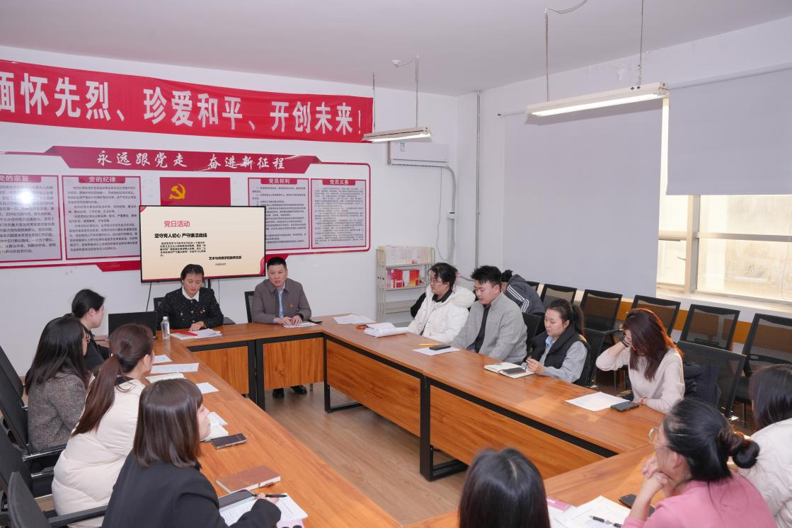 近日,艺术与传媒学院教师党支部组织开展“坚守育人初心 严守廉洁底线”主题党日活动。活动中,全体党员集中学习了习近平总书记在二十届中央纪委五次全会上的重要讲话精神,共同观看“清廉中国”微视频与典型警示案例,并结合艺术传媒专业教师岗位实际交流学习心得。