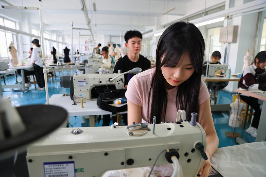 服装工艺实训室(二)为综合性实验室,实验室内包含一台智慧黑板、缝纫机39台、码边机2台、烫台2列、熨斗8个。该实验室设备齐全,设备能够满足学生进行缝制、裁剪、熨烫等各种服装工艺实训的需求。实验室主要面向服装设计与工程专业、服装与服饰设计专业,可承担下装工艺制作、女装工艺设计、服装工业化生产实训、女装综合实训、男装综合实训等专业课程的讲授。教师借助专业设备采用理论实践一体化的教学模式,模拟服装生产企业的规格来建设和投入使用,让学生在校能真正参与工厂的生产、管理工作,并在模拟生产车间独立进行各项实习,助力学生学习专业理论知识、熟练掌握专业实践技能。