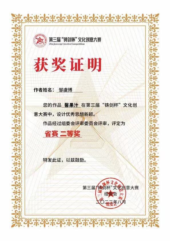 2024 年“第三届“铸剑杯”文化创意大赛省级二等奖”