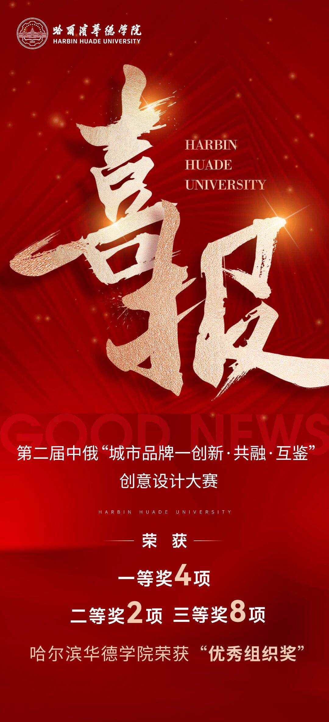 近日,第二届中俄“城市品牌一创新·共融·互鉴”创意设计大赛圆满落幕。哈尔滨华德学院艺术与传媒学院师生凭借扎实的专业功底与出色的创意表现,从41所参赛院校、1721份作品中脱颖而出,共斩获一等奖4项、二等奖2项、三等奖8项,三位教师获“优秀指导教师”荣誉称号,哈尔滨华德学院荣获“优秀组织奖”。这份成绩单不仅是对师生专业能力的肯定,更是艺术与传媒学院长期坚持“教赛结合、以赛促学”教学理念的生动体现。