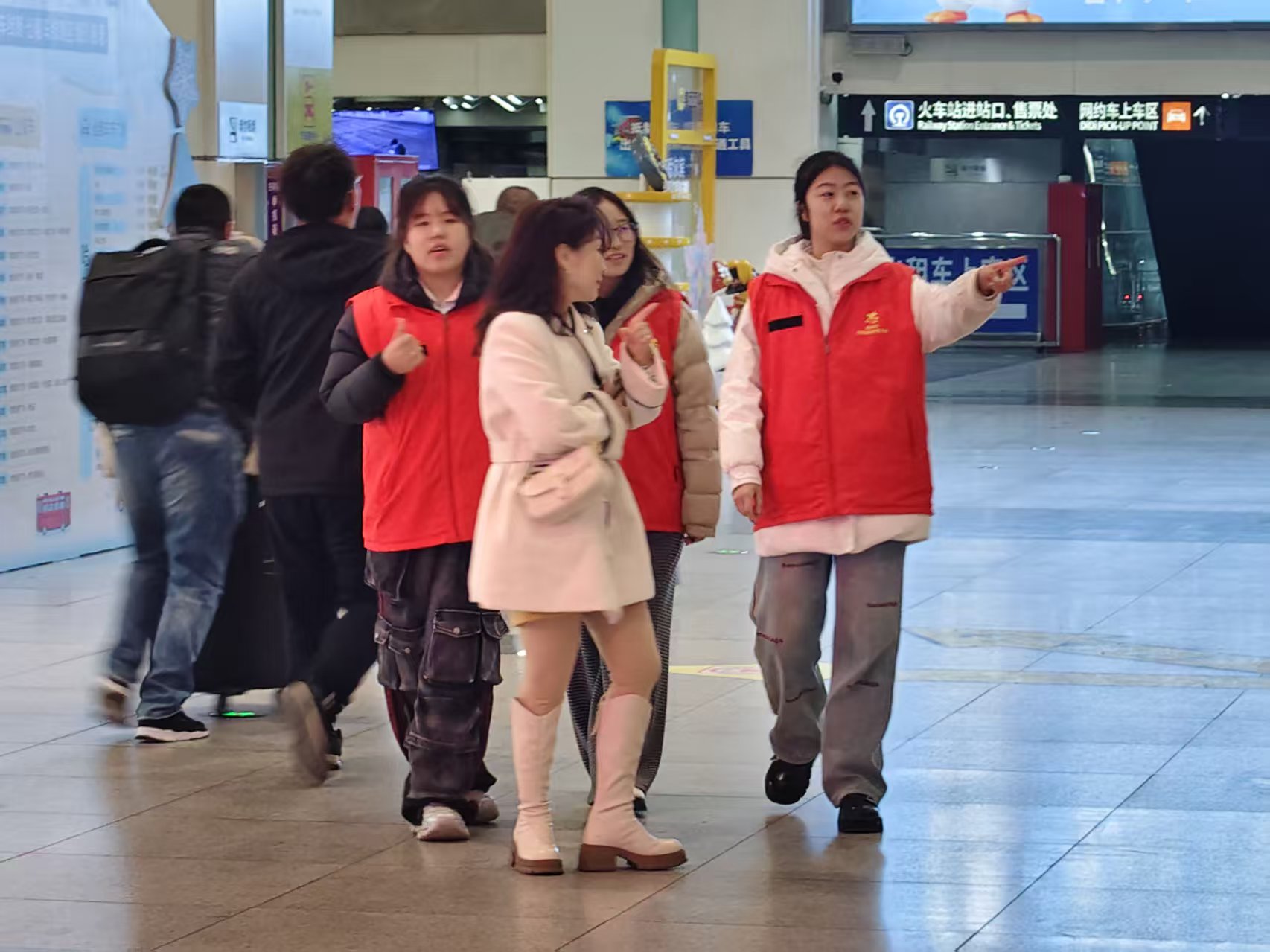 活动当天,志愿者们按时到达地铁站,在完成与站内工作人员的工作对接与分工后,迅速投入各关键点位开展服务。在进出站口、换乘通道等人流密集区域,志愿者们热情为旅客提供路线指引、换乘咨询及票务协助,主动帮助老年乘客及携带大件行李的旅客顺利通行。志愿者们以暖心、细致、耐心的服务,保障了车站秩序井然、通行顺畅,展现了当代大学生积极投身公益、甘于奉献的精神风貌。