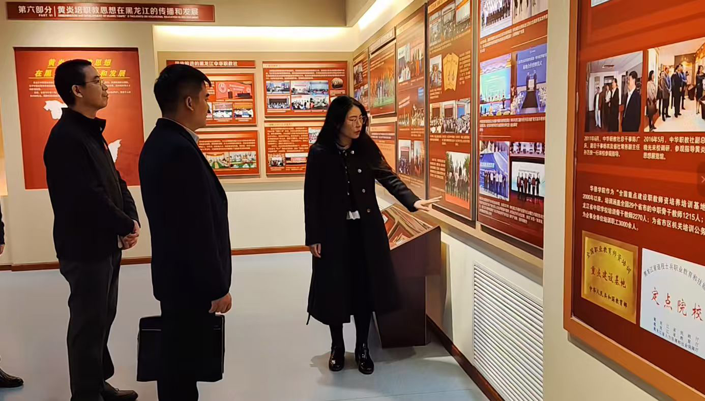 省委台办一行先后参观了位于哈尔滨华德学院校内的黑龙江省国防教育基地、歼七及歼八战斗机、运五飞机、坦克实物展陈、雕塑群像、东北烈士纪念馆分馆、黄炎培与陶行知教育家纪念馆、雷锋精神纪念馆,以及非遗工作室。详细了解了各参观点位的教育意义与展示特色,为即将到来的台湾同胞参访活动做好充分准备。