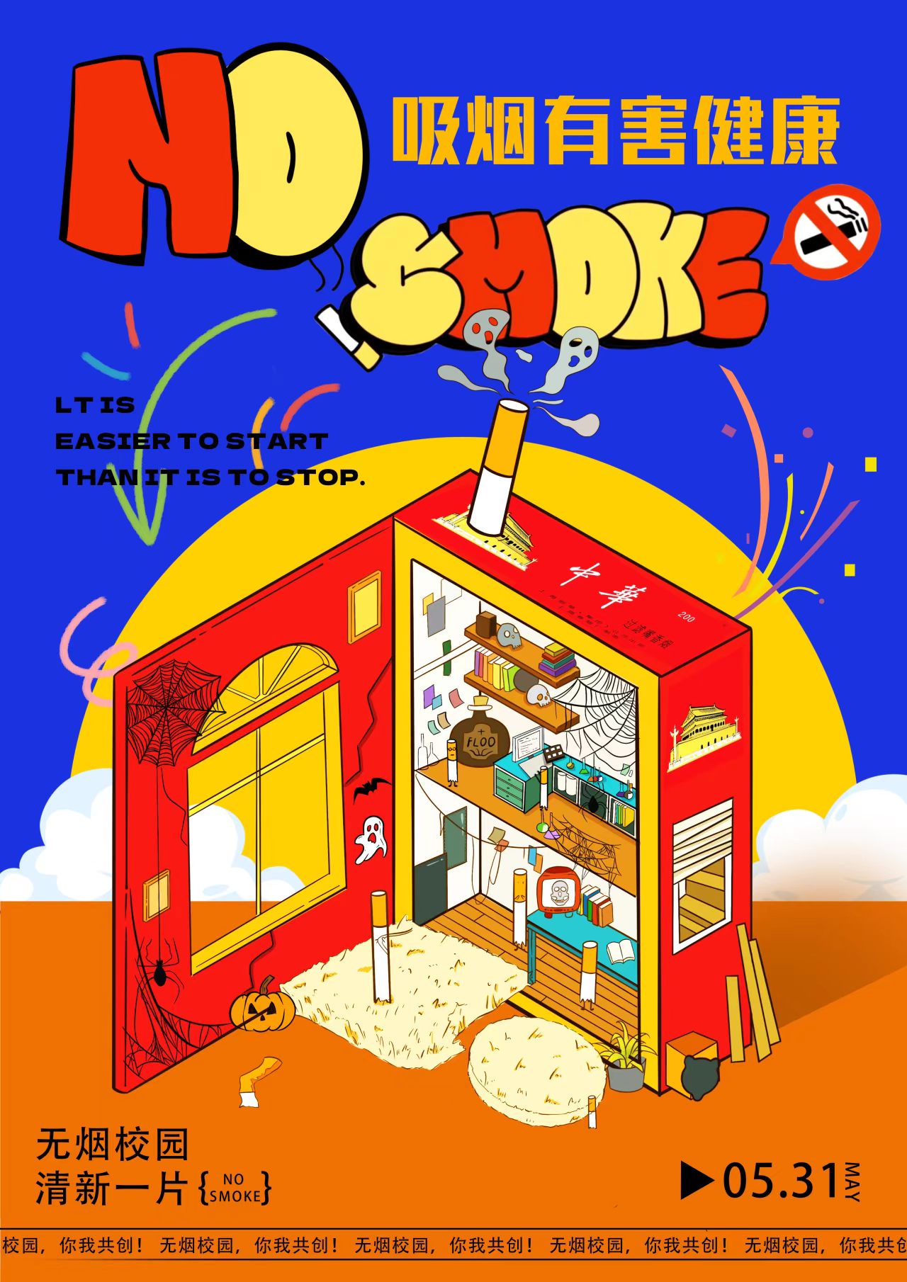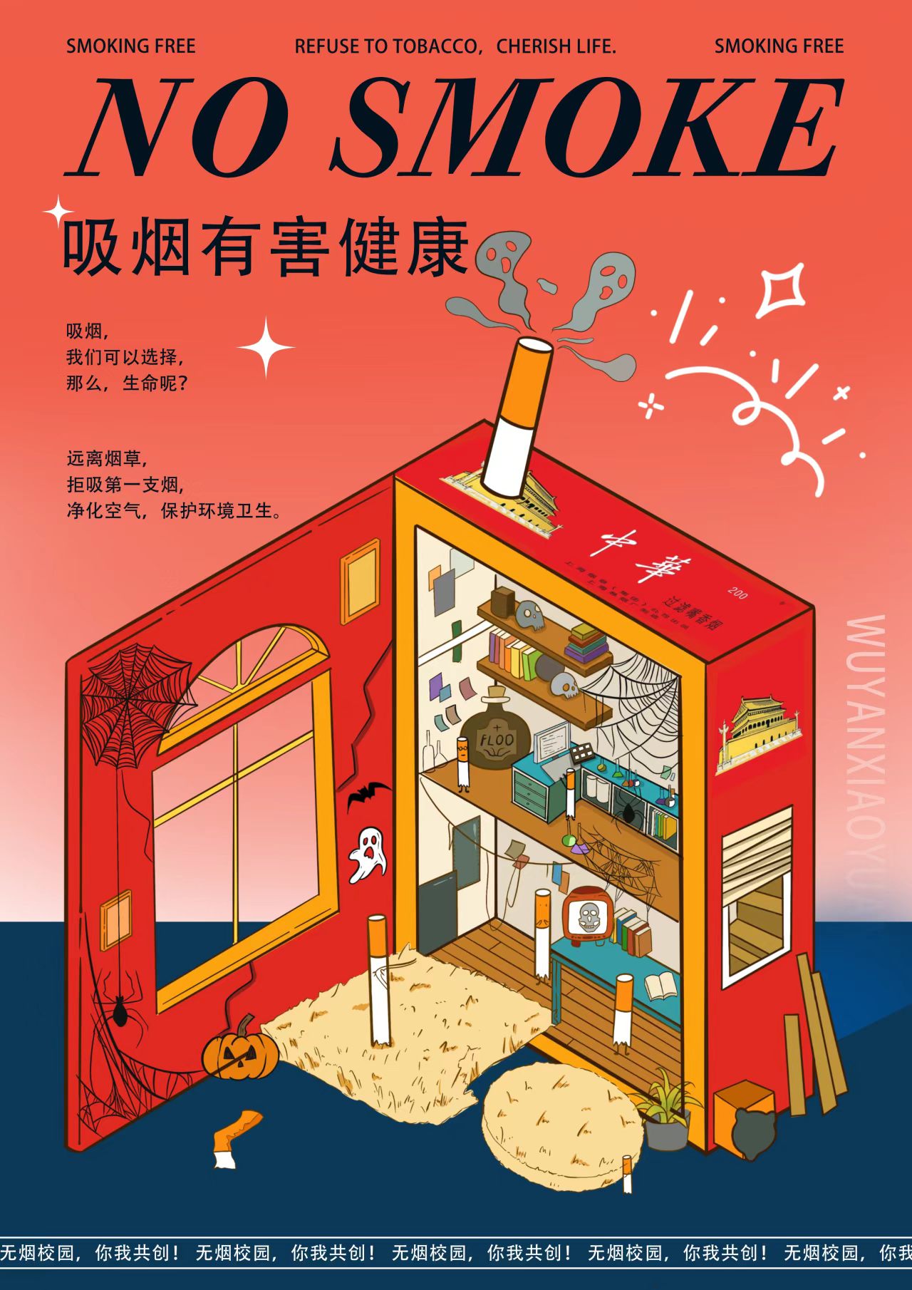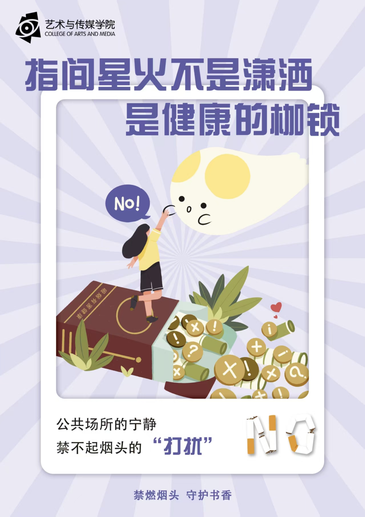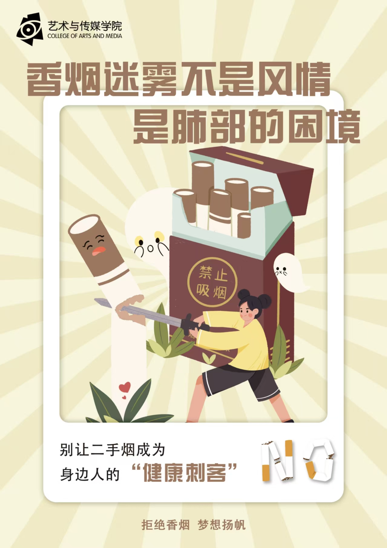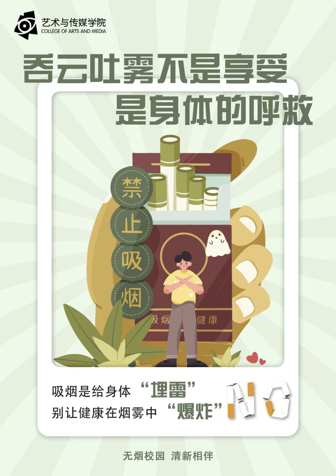 为扎实推进无烟校园创建工作,强化全体学生的控烟禁烟意识,广泛开展禁烟主题宣传,传递绿色健康生活理念,合力打造清新、文明、健康的校园育人环境。艺术与传媒学院于近日开展了无烟校园海报设计比赛。经评审,现将获奖作品公示如下: